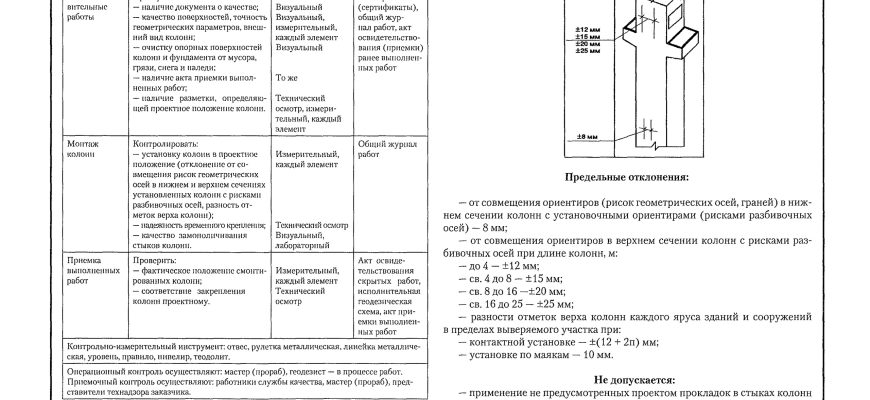 Схема операционного контроля качества колонн