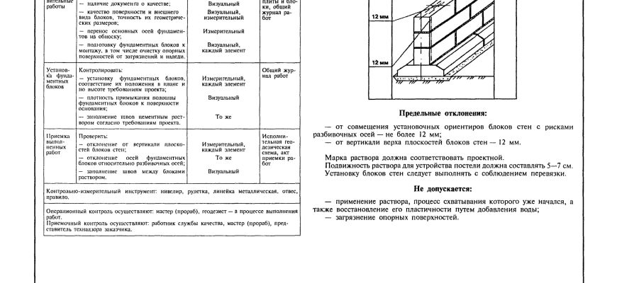 Схема операционного контроля качества сборного фундамента