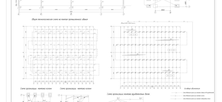 Техкарта на монтаж каркаса промышленного здания в DWG