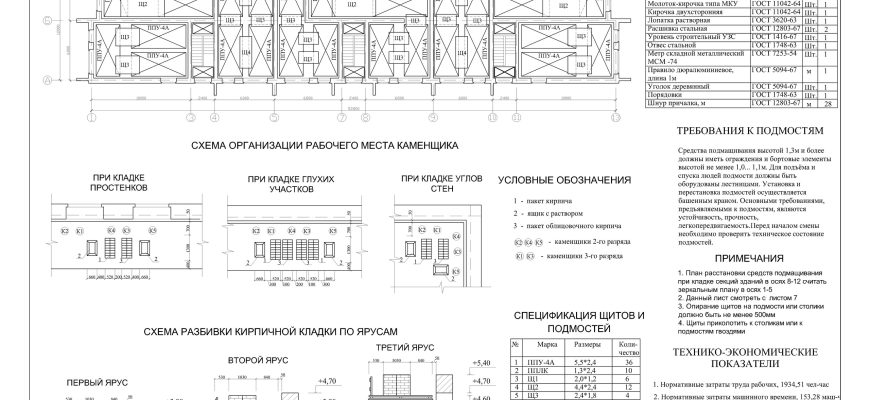 Техкарты на кирпичную кладку и устройство стропильной системы. Чертежи автокад + ПЗ ворд