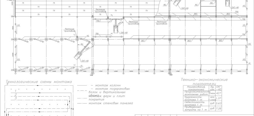 ТСП на монтаж элементов одноэтажного промздания, графичкская часть автокад, пз в ворде